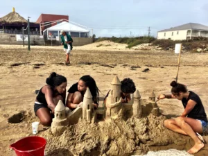 Carve with us for as low as $80 when you come to our favorite beach ( Access #16 ). For a little more, we will meet your group anywhere on SPI and help you buld a completed piece. Our lessons are tailred specifically for different groups, including “Grandma & Me” and “Castles & Cocktails.” View a list of the different lessons we offer.