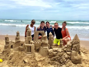 Whether you’re a girl scout troop, a church youth group, corporate conventioneers or just a group of folks who like to hang out together — sandy feet can help you wcrk together or in teams to create big beautiful sand castles and/or beach billboards. We provide equipment, knowhow and enough instructors to work with groups numbering in the hundreds. Who says something as productive as team-building has to be dry and boring? Not us!