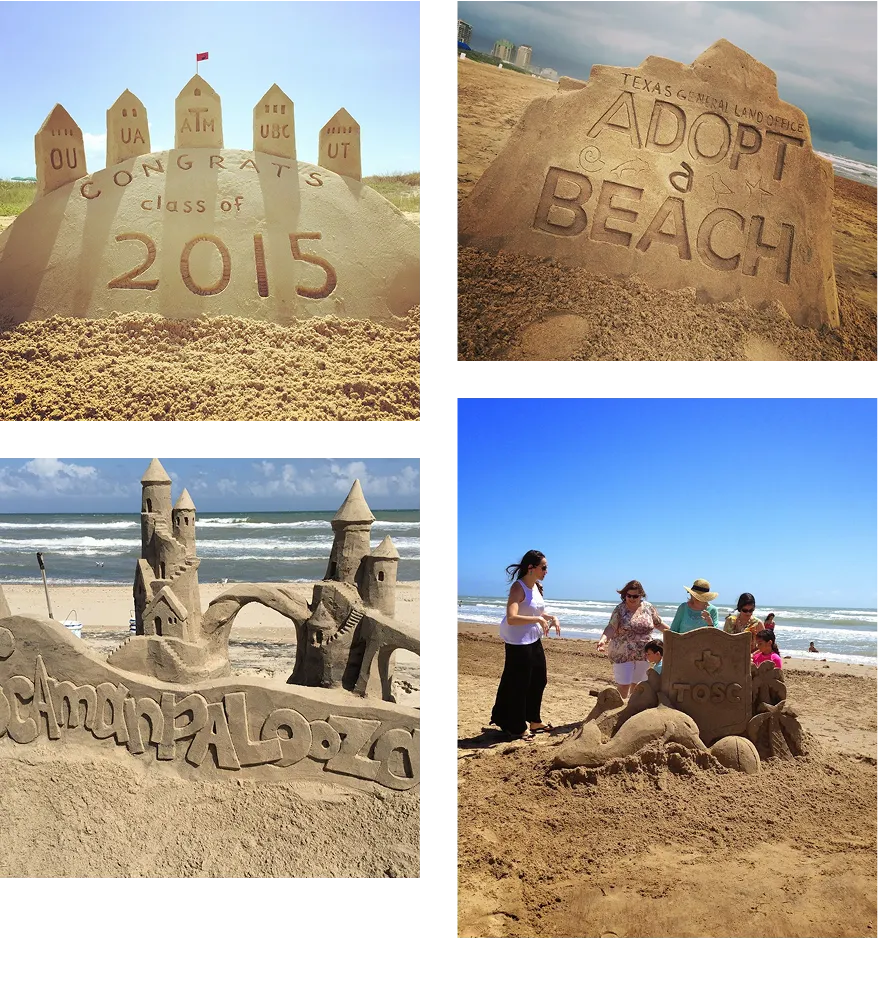 * “Home Beach” is beautiful South Padre Island, TX – we get great weather all year round and big crowds during spring break and throughout the summer. If you are interested in a different beach demographic, we can probably hook you up with a qualified sand sculptor in a different location — just ask!