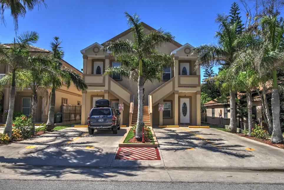 A second-story condo - beautifully decorated and lovingly maintained - can sleep up to 6 people. Only four condos share the pool area and the four-plex is just half a block from the beach.