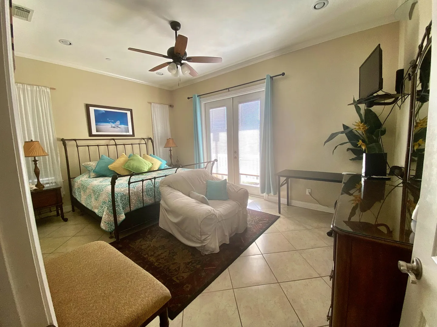 Our newly-renovated 1BD/2BA ground floor unit sleeps five - 1 Queen in BR, daybed and sofa sleeper in spacious living area, but is best for a couple and a dog or three. Full kitchen, enclosed patio area with pet door and huge dog kennel. Sandy Feet lived here for 25