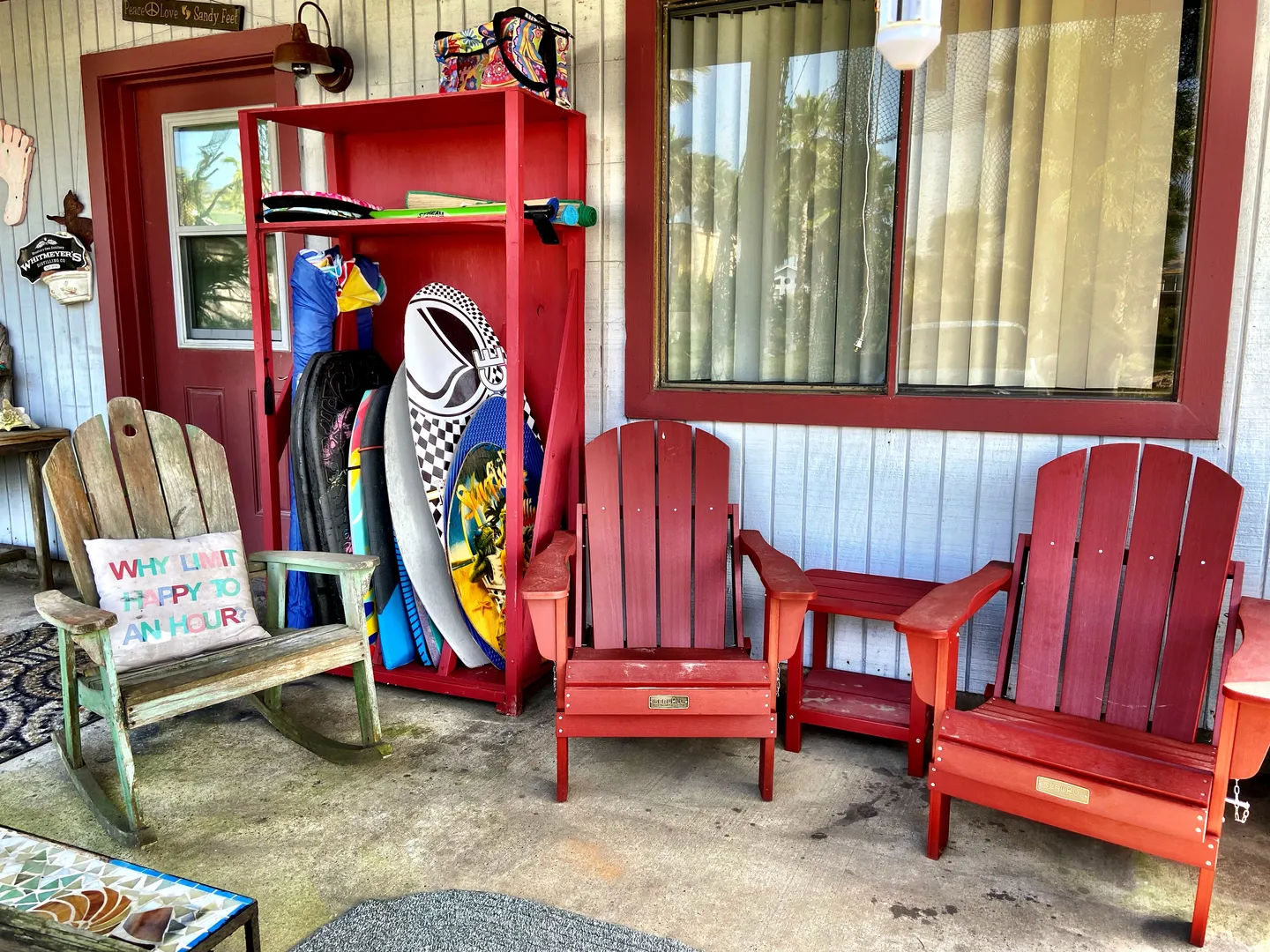 like pantry & pet items, boogie boards & beach toys and a backyard fire pit.
